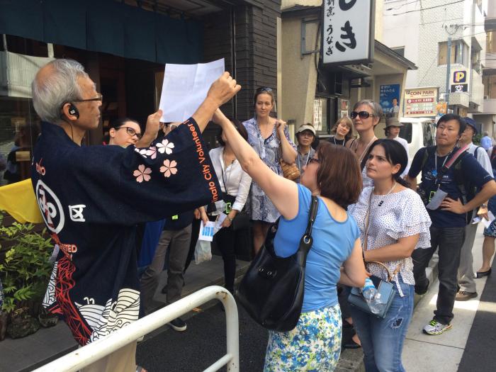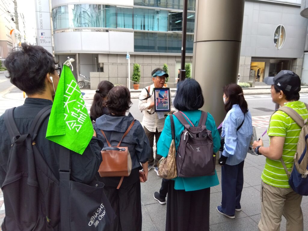 私が所属する中央区観光協会では、文化財の活用として「わくわくツアー」という企画を行なっています。年間30本ほどの企画があり、2つのボランティア団体がガイドを担います。一つは「中央区観光検定」に合格し、観光協会主催の育成講習を受講した「中央区おもてなしスタッフ」。もう一つは中央区区民カレッジの「生涯学習サポーター養成コース」を修了した皆さんで、「中央区文化財サポーター協会」という団体が構成されていますね。一般向けのツアーのほか、企業様からのご依頼でオーダーメイドのまち歩きも実施するなど、1959年の設立以来ずっと継続している取り組みです。